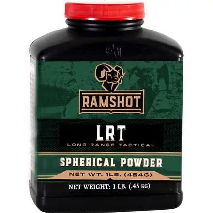 New to our Shooters and is the Ramshot Smokeless Powder. It has not been pulled from loaded ammunition and it is not military surplus powder. Every powder in the Ramshot family is double-based and spherical-shaped. Ramshot LRT, stands for Long Range Target, is targeted at 338 Lapua shooters. The burn rate is similar to Retumbo.