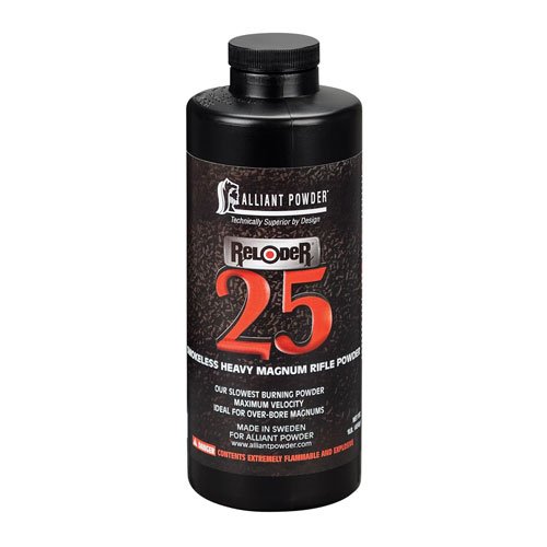 Alliant Reloder 25 In Stock Now is Alliant’s slowest burning powder, making it an ideal option for Weatherby Magnum, Winchester Magnum, and Winchester Short Magnum cartridges. Since it burns slowly, it produces more critical higher energy levels for those risky game hunts when there is no room for mistake.